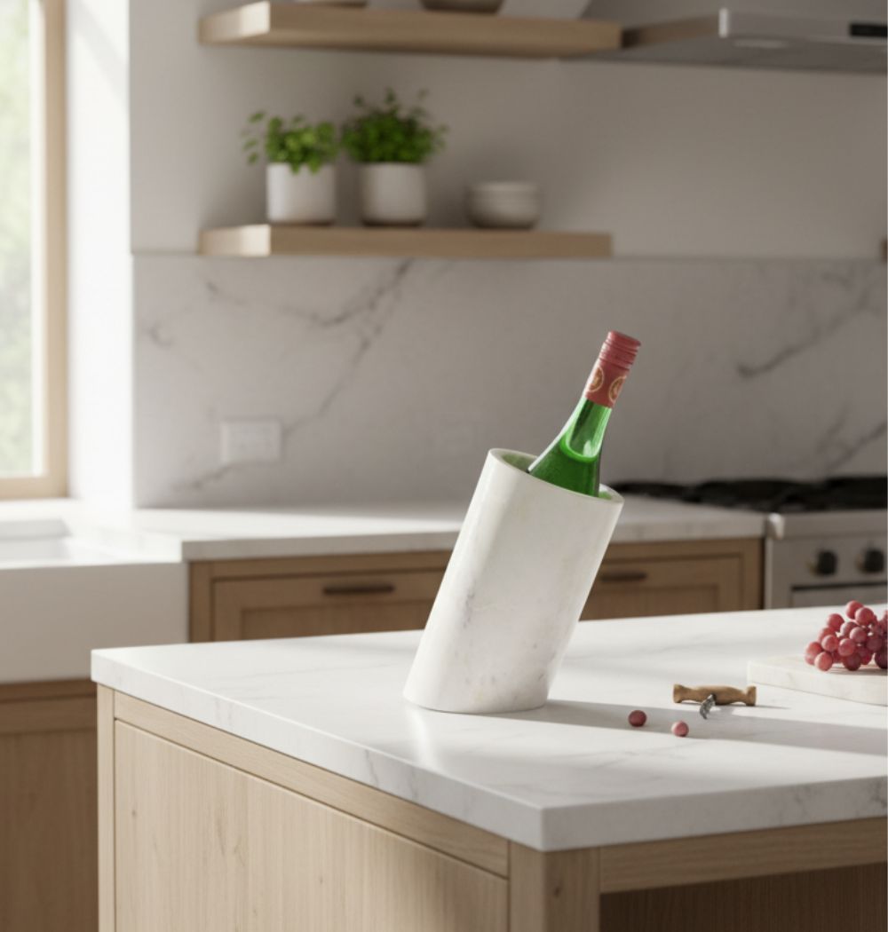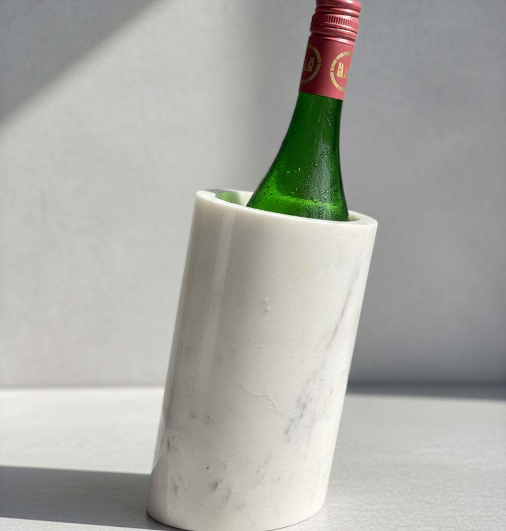 Elevate your bar experience with our handcrafted Marble Wine Chiller designed to maintain the perfect serving temperature for wine, champagne, and sparkling beverages. A stunning blend of luxury and functionality. The inherent cooling properties of marble allow this chiller to remain cold for hours, delivering a consistently refreshing pour every time.